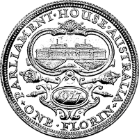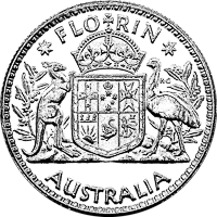 As the largest of Australia’s regularly circulating silver coins, the Florin was struck from 1910 to 1963 and represents the reigns of Edward VII, George V, George VI, and Elizabeth II. A few commemoratives were made and circulated alongside the standard issues, of note is the 1934 Centennial of Victoria and Melbourne which had 21,000 specimens melted. As with other silver Australian coins, the composition was 0.925 fine silver until 1945 and 0.500 fine thereafter and minting was sometimes outsourced to foreign facilities.