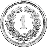 The One Rappen is the smallest value assigned to a coin. The majority of the issues were struck at the Bern Mint, however a select few were made in Paris in 1851. Mintages were generally high for the series, though the 1896-B production is extremely low and highly sought after. The coin was struck in bronze except during the years 1942 to 1946, during which time it was struck in zinc. The denomination was discontinued in 2006 and withdrawn in 2007.