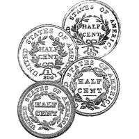 The Half Cent is the lowest denomination issued for commerce by the United States Mint. It holds the additional distinction of being one of the first coins minted as well as the first to be discontinued. Five major design types and a private token comprise this series that today is highly appreciated by specialists.